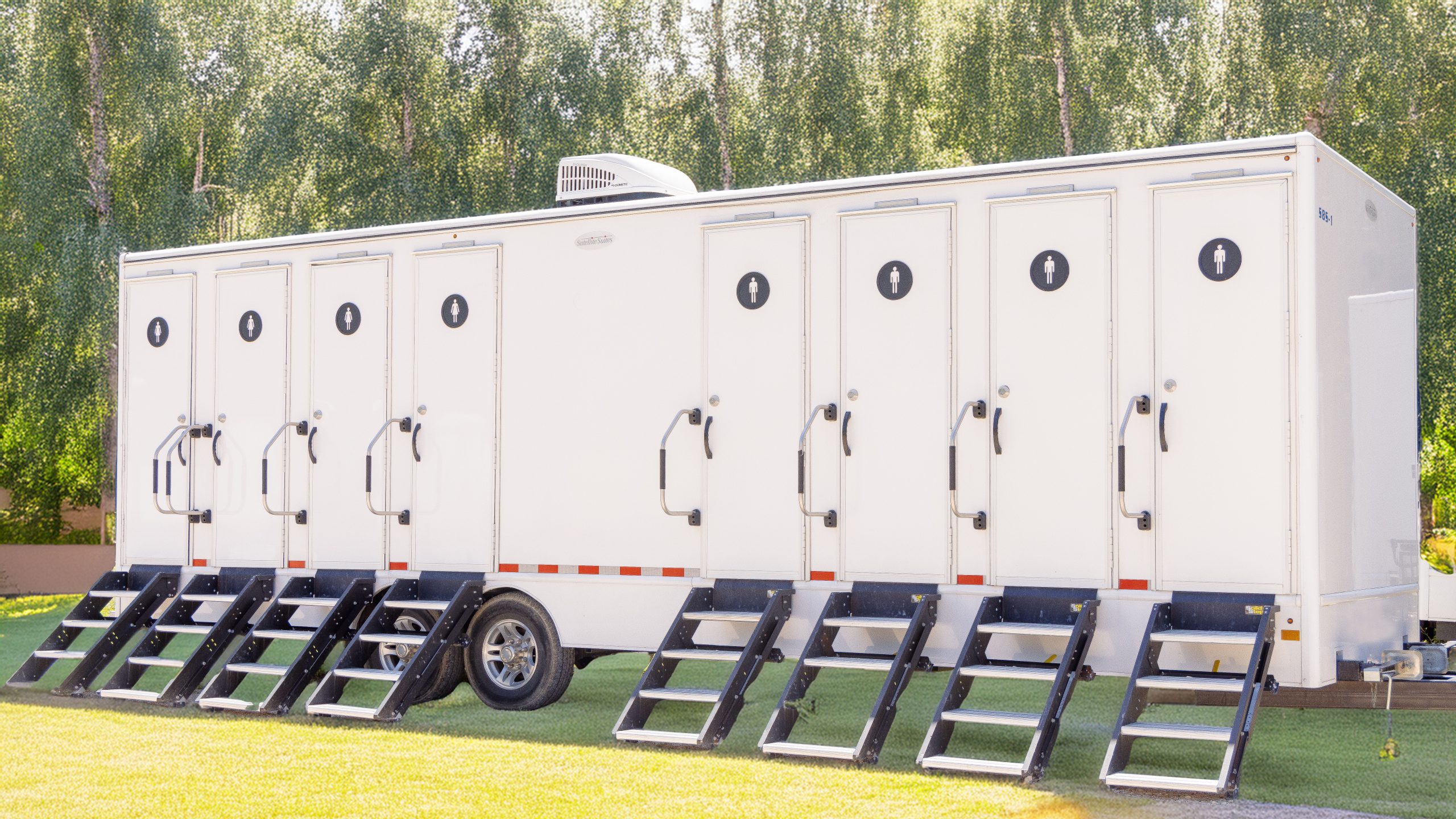 Our restroom trailers, especially the 8-station ones, are ideal for large events, providing ample facilities for numerous guests.